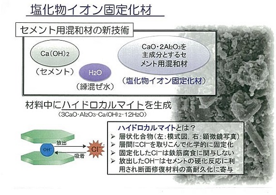 ・塩化物イオン固定化材がセメント化合物(又は鉱物)であるため、発がん性など人体に有害な亜硝酸成分を含んでいないので、材料の製造工場や施工現場では、取扱い上の安全性が向上する。