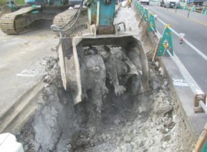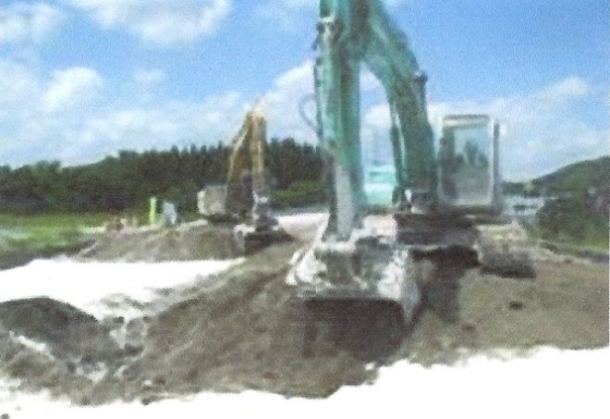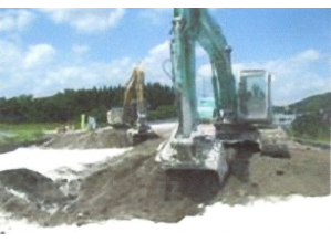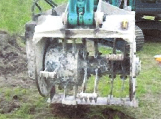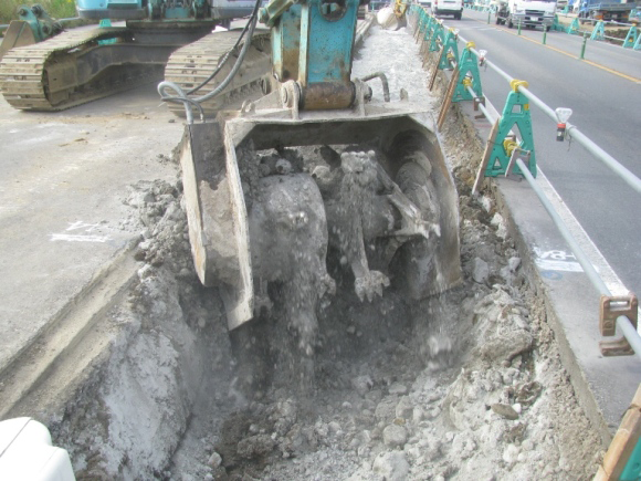 ・スタビ混合機をバックホウ装着のバケット式スタビ混合機にした。