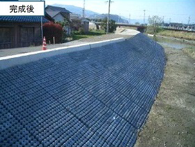 ・河川護岸でブロックマット等の被覆材をアンカーで固定する場合、VOLCLAY MATは粒状ベントナイトにより自己修復性能がある。
