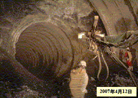 ・酸性液体急結剤では添加量を増加しても低温や湧水時など条件の悪い場合には吹付け材料の剥落が多く施工速度が低下していたが、本工法は作業条件の悪い(湧水、低温、厚吹付け、変位が大きい)ところでも施工速度が低下せず低粉じん施工を可能とした。
