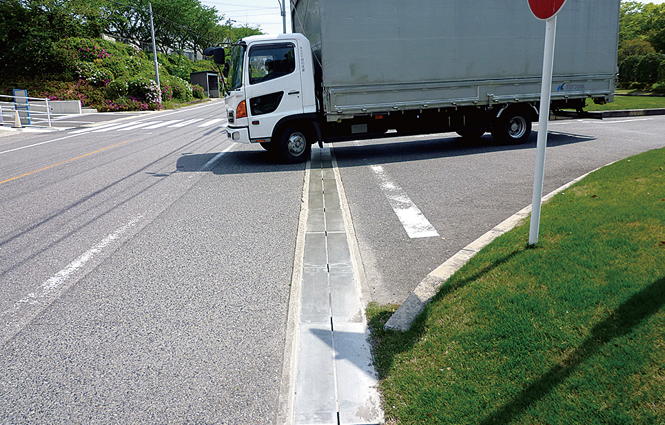 ・歩道用蓋はスリット幅10mm、スリットへの天端横断勾配1%であるため、バリアフリー対策も万全。