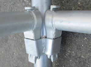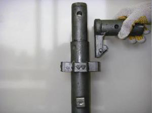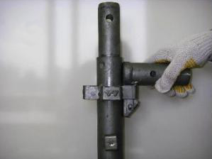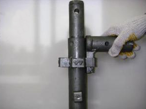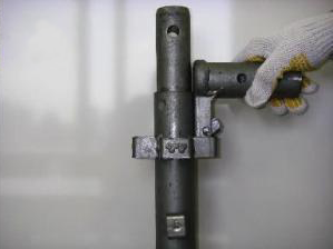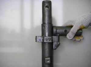 ・従来、ボルトや溶接による接続は支柱のどこにでも取り付け可能なため、支柱と水平材やブレスの接続は熟練工による現場合わせで組立てていたものに対し、全て定尺のシステム部材とすることにより誰が組立てても支柱および水平材のピッチが一定となり設置精度が確保される。
