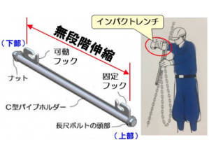 ・工具不要のワンタッチはめ込み方式の採用により作業員は片手で作業ができるようになり、従来技術に比べ転落、落下の危険性が少なくなり安全性の向上が期待される。