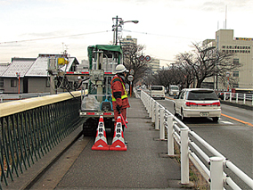 ・より多くの橋梁に対応でき且つ、桁下の狭隘部位にも遠隔操作によりピンポイントでビデオカメラの挿入が出来て、従来近接目視が困難な部位も点検可能となり近接目視点検の範囲拡大と点検精度が向上した。