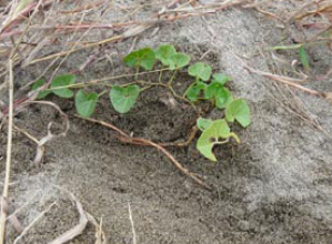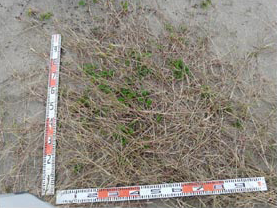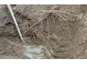 ・はまみどり工法により形成された植生は、従来工法によって形成された植生よりも地上部及び根系部ともに植被率が高いため、砂浜安定化と飛砂防止効果の向上が期待さ れる。
