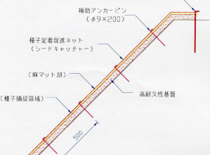 ・マットで適切な基盤環境を整えることにより、早期緑化が可能となる。