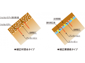 ・植栽物を保護する静砂垣や、防砂ネットなどの地上構造物を設置する工法から、マット状の植生基盤を埋設し、地上構造物を不要とした。