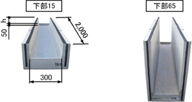 ・門型で底無しの自由勾配側溝を、上部の門型と下部のU型に分割した構造にした。
