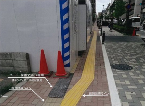 ・視覚障害者誘導用ブロックの保護専用のゴム製マットとした。