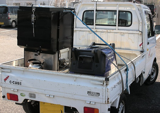 従来:小規模な現場でも大型のガス窯(重量200kg・容量100L)を使用。