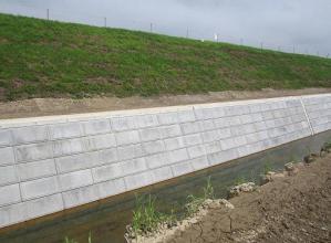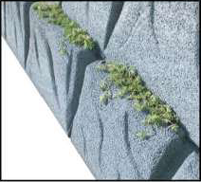 ・ブロック表面を割石模様とし、緊急避難時に子供でも登れる壁面とした。