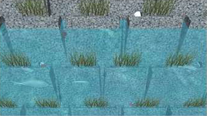 ・階段状に構築することで、ブロック前面に生物生息・生育空間が生まれる。