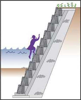 ・子供でも登れる壁面としたことにより、津波発生等の緊急避難時に高所への避難が可能となり、防災機能が期待できる。