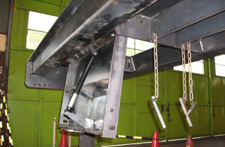 ・検査窓(重量27kg)開放時にガススプリングダンパーが働き、開放速度1.6m/sから0.8m/sと低減させることにより、作業員のヒヤリハットを軽減することができる。