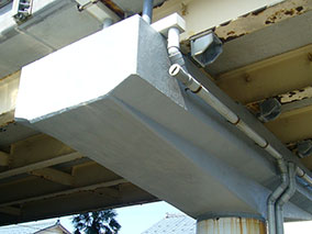 連続繊維シート接着工法から無溶剤塗料2層塗りとし、湿潤面にも直接施工可能とした。