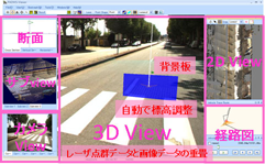 ・自動標高調整機能及び背景板(特許技術)の利用により、地物の任意地点における3次元座標取得が可能となった。