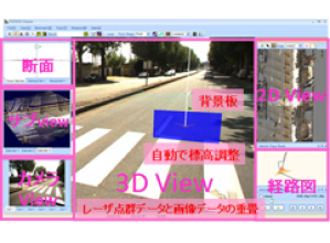 ・レーザ点群データと画像データの重畳による道路部可視領域の拡大や地物把握の的確さ、断面図利用、自動抽出処理により、図化作業効率が向上するとともに、現地での調査、測量作業が縮減された。