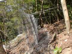 ・斜面直角設置が可能となったため、従来技術より柵高を抑えかつ設置延長を短縮できる。そのため、既設柵で柵高不足が発生した場合でも、斜面上に設置することで柵高不足を補うことができる。