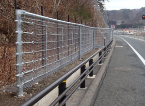 ・従来技術は、施工延長の両端に落石の衝突を見込まない端末スパン(3.0m)を設置していたため、最低3スパン(9.0m)以上の設置が必要であったが、本工法は、新しい緩衝機構と支柱の頭部連結により、端末スパンを省略し、1スパン(3.0m~6.0m)からの設置が可能となった。