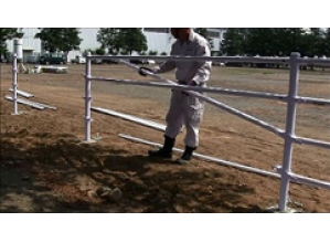 ・金具に支柱と係合する突起を付加させた事で、金具をボルトで支柱に固定する必要がなく工具なしで固定できるので、施工性の向上が図れる。
