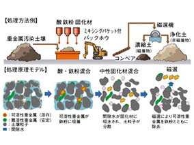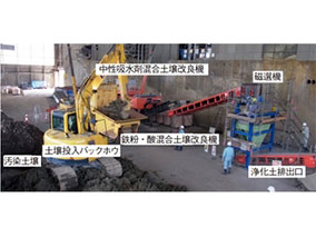 ・汚染土壌中の重金属物質と浄化土を分離することに変えたことにより、分離した重金属汚染物質のみを管理型最終処分場等へ運搬処理すればよいこととなるので、経済性の向上および周辺環境への影響抑制が図れる。