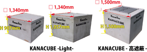 ・保管場所のスペースは、KANACUBE-Light-、20m3を保管するする場合4.5m×4.5m=20.25m2 多段積(三段積)の面積が必要。