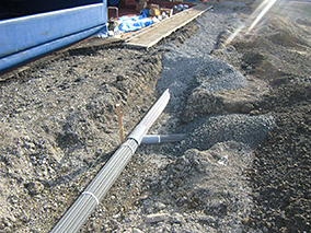 ・バックホウ0.45m3、作業スペース3m×7m=21m2で施工可能。