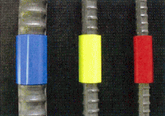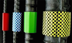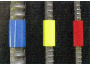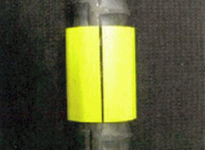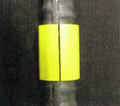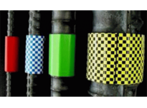 ・鉄筋に対して長手方向に50mmの長さがあり、鉄筋の外周に巻き付けて使用するのでどの角度からの視点でも視認性がよい。また、夜間でも表示面積が大きいため視認性が高いと言える。
