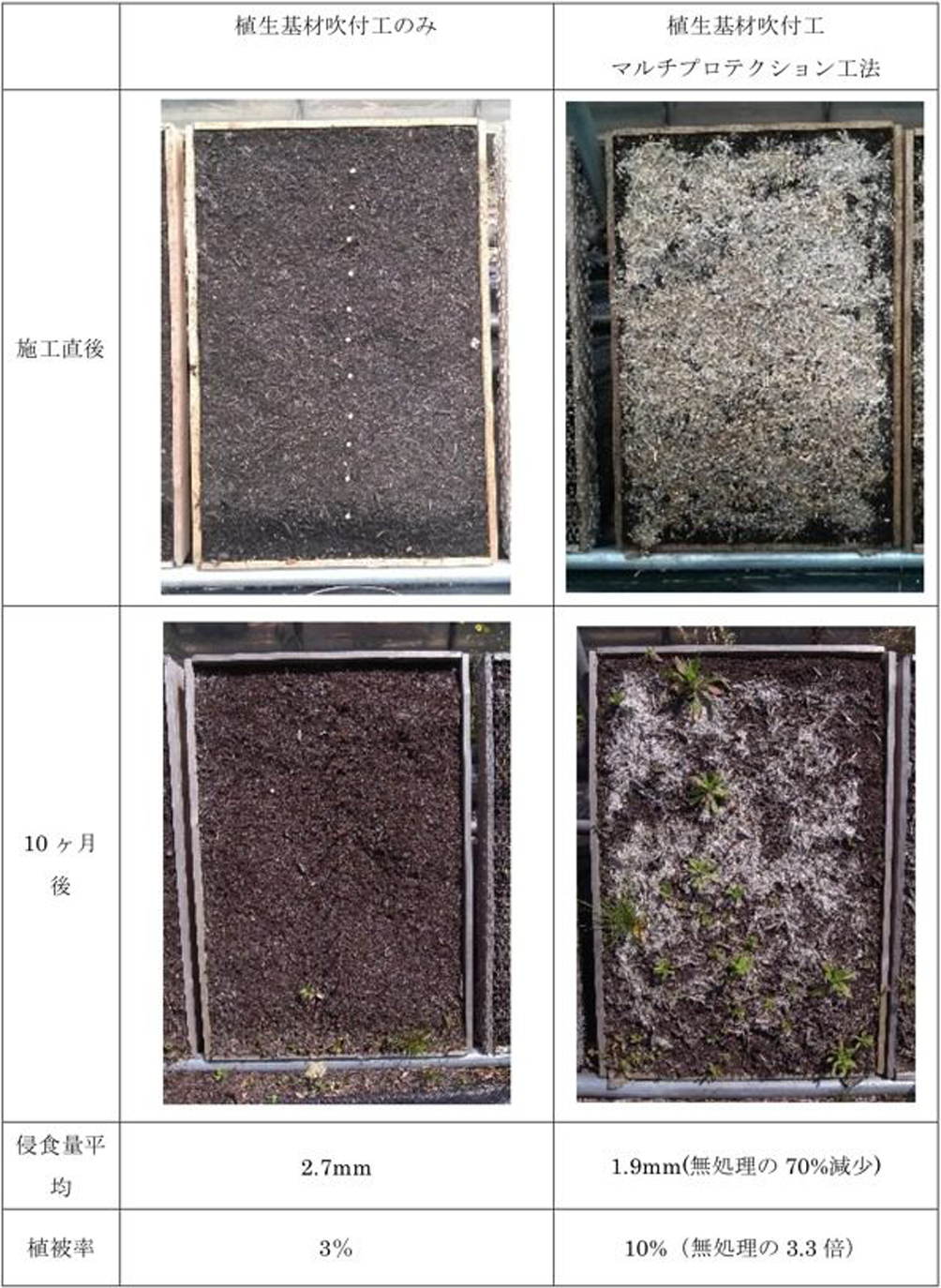 ・植物が発芽・生育するまでの間、降雨による浸食はほぼ見られない。