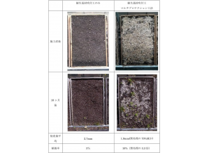 ・繊維状のマルチプロテクション材(天然複合繊維のマルチング材)が微細な凹凸を形成でき、その凹凸に周辺から飛来した種子を固定することができる。