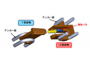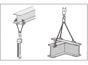 建設現場において鉄骨等を高所へ吊り上げる際に使用するクランプ製品の技術である。 特徴: 1.締付状態確認機構:締付確認ラインが本体に収容されることで締付状態を締付ねじ側から目視可能 2.球面アゴ(球面アゴの回転等によるくい込み力) 3.先端旋回パッド式締付ねじ:締付ねじの先端がねじ本体とは独立して旋回(少ない力で効率よく取り付け可能、締付け時の回転による歯先の摩耗を軽減)