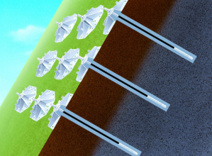 テンドン自由長とアンカー体長をラップさせた全長の短いグラウンドアンカーを用いて、表層地盤に圧縮応力を加えて土砂流出を防ぎ、切土法面や自然斜面の表層崩壊を防止する技術。 全長の短いグラウンドアンカーの引張り材両端部より引張り力を作用させ、切土法面や自然斜面の浅層崩壊を抑止する技術。