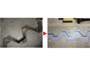 遊間部からの漏水が問題となっている橋梁の伸縮装置の劣化した伸縮ゴム部分のみを除去し、塗料による止水塗膜を形成し補修する。これまで各種ウレタン防水材や建築塗料で培ってきた技術を土木分野に転用し、耐久性、耐候性に優れた1成分タイプのウレタン樹脂系塗料を止水材として採用した。 ※NEXCO試験法438 公的品質証明を取得済。 ※国土交通省「橋梁伸縮装置止水部の補修に関する技術」に選定。