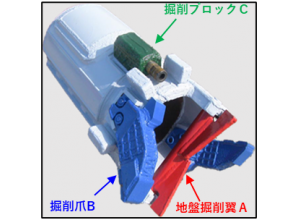 軟弱地盤中に硬い中間層(N値20以上の砂質土)があった場合でも、先端に硬土土質地盤への貫入能力向上に対応した特殊先端刃(地盤掘削翼、地盤掘削爪、掘削ブロックにより構成)を装備したケーシングパイプを回転貫入装置により貫入させることで、ケーシングパイプ外周部直下まで確実に掘削することが可能な技術。 回転貫入装置により特殊先端刃を装備したケーシングパイプを貫入させることで、低振動低騒音でSCPを施工することができる。