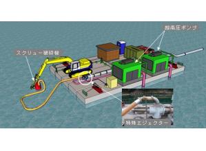 高圧水により負圧を発生させる特殊ポンプで、土砂を吸引・圧送する浚渫方式の技術