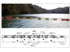 ダム・河川等の工事等において大型船を運航する際、流木止設備を通過する手段として用いる浮沈式ゲートの機械設備技術であり、個々のフロートをコンプレッサーとバルブコントロールユニットでエア量を調整し沈下させ効率的に大型船を通過させることができる。