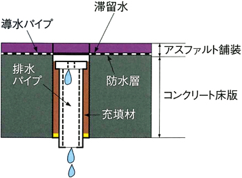橋梁や高架橋等の道路に埋設される道路用排水パイプおよびその埋設方法に関する新技術。