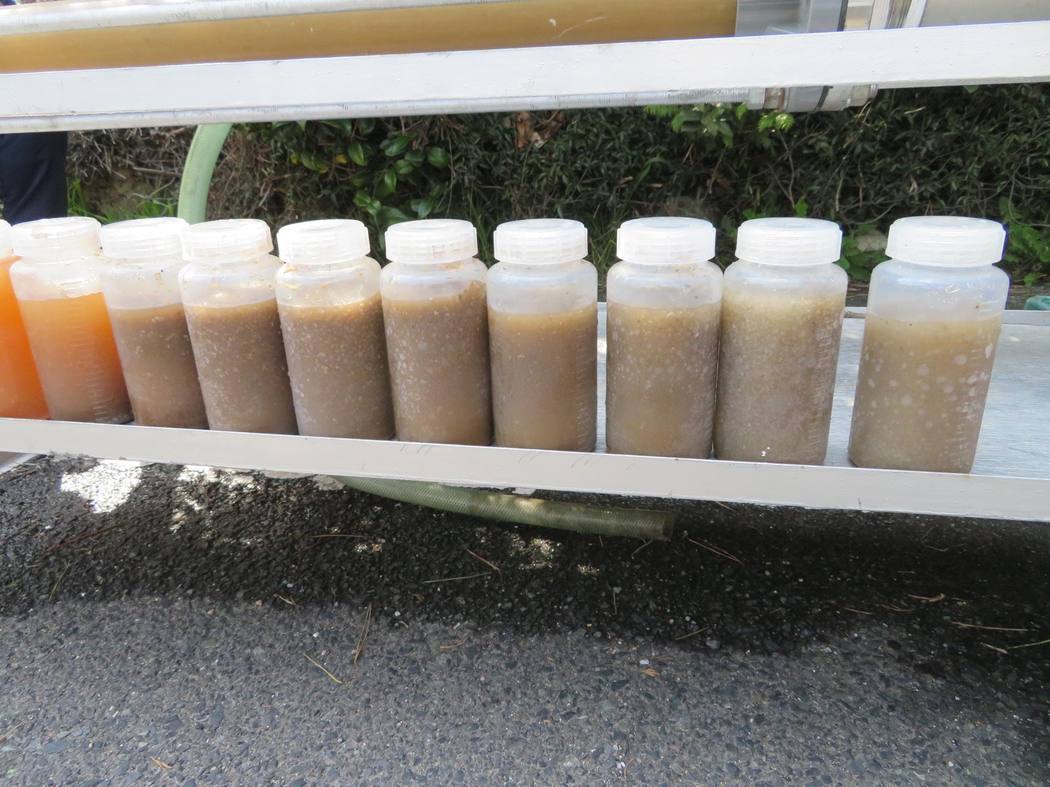 透明アクリル管で除去した夾雑物を確認 |