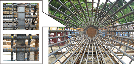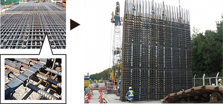 すべての鉄筋と補強枠、もしくは鉄筋同士を溶接で剛接せず、独自の無溶接金物で固定する。