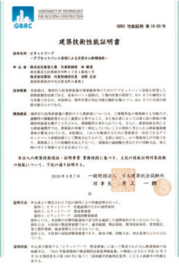 ■ ピタットフープが建築技術性能証明、土木学会(技術評価証)を取得