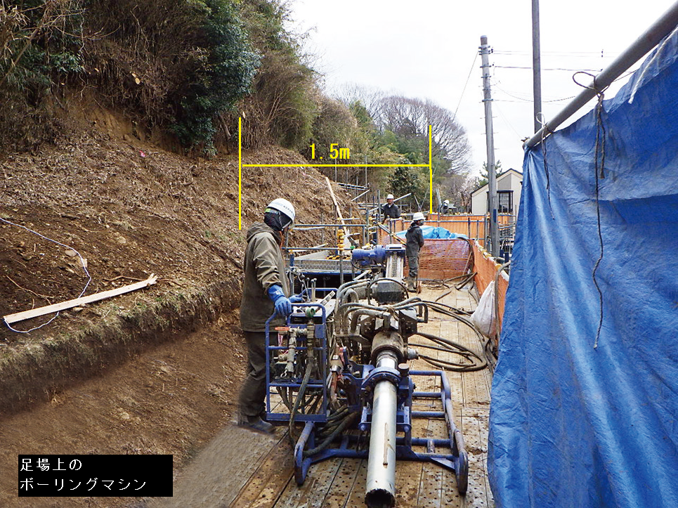 500kg程度のボーリングマシンを搬入と設置ができれば施工可能です。大型機械が