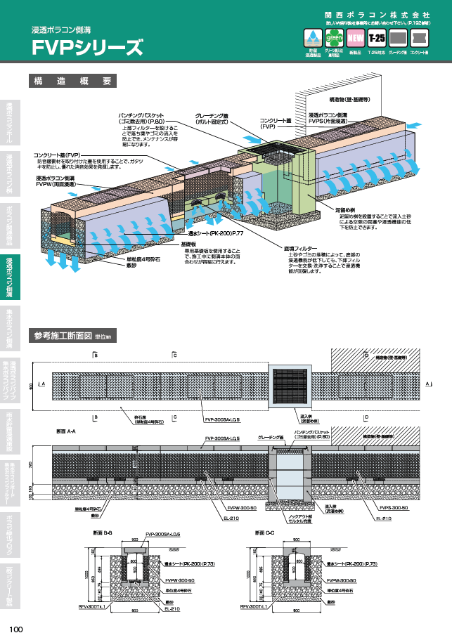 め。側溝の深さが300mm~1,000mmまで100mm毎のラインナップがあり、可変勾配