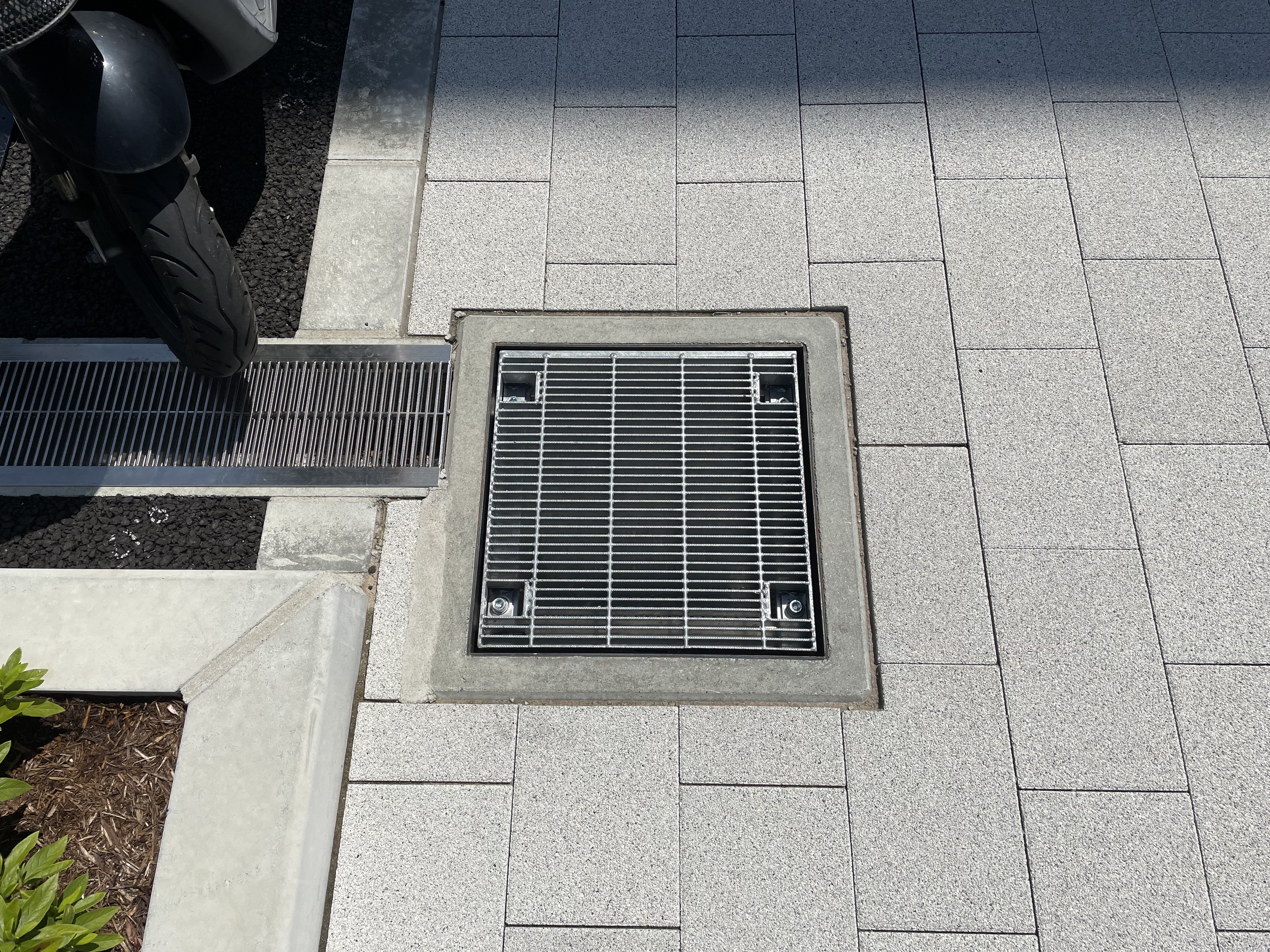 グレーチングはボルト固定仕様で車両が載った際の騒音も防止できる。