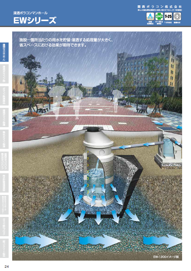 浸透ポラコンマンホール「EWシリーズ」は、当社の雨水浸透製品の中で最も処理量の大