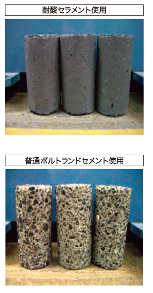 耐酸セメント系材料「耐酸セラメント」は硫酸腐食などが予想されるコンクリート構造物やモルタルの耐酸性を向上させることのできるセメント系無機材料である。