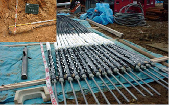 SSL-P型/M型アンカーは、地盤とグラウトとの周面摩擦抵抗に依存しない拡孔支圧アンカー。地盤を拡孔してアンカー体を造成し、支圧抵抗によりアンカーを支持する。