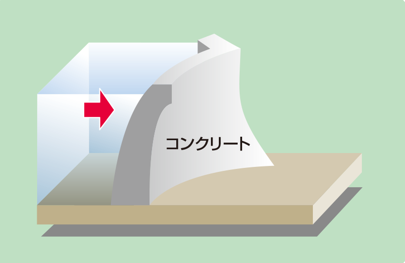 従来は、多くのコンクリート構造物と同様に型枠を組んで流動性のあるコンクリートを流し込んで締め固めていた。これに対して水とセメント量を少なくした超硬練りのコンクリートを用いる。見た目は「バサバサ」の状態だ。現地のプラントで製造したコンクリートは、ダンプトラックで運搬し、ブルドーザーで敷き均して振動ローラーで締め固める。汎用の重機で施工でき、従来のようにブロックに分割する必要がなく、連続施工ができる。大量打設が可能であり、工期の短縮、工費の削減を可能にした工法である。