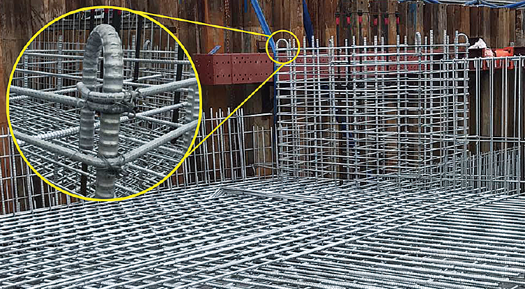 めっき鉄筋のコストは、エポキシ鉄筋の工程よりも容易に表面処理できることで安価