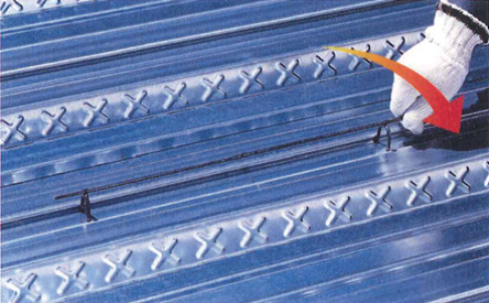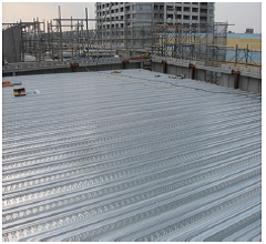 MAデッキは、デッキプレート表面にXエンボスが施され、コンクリートとデッキプレートを効果的に一体化したデッキ合成スラブ構造で、施工性に優れ、経済的であることに加え、耐火に強い合成スラブ用デッキプレートである。