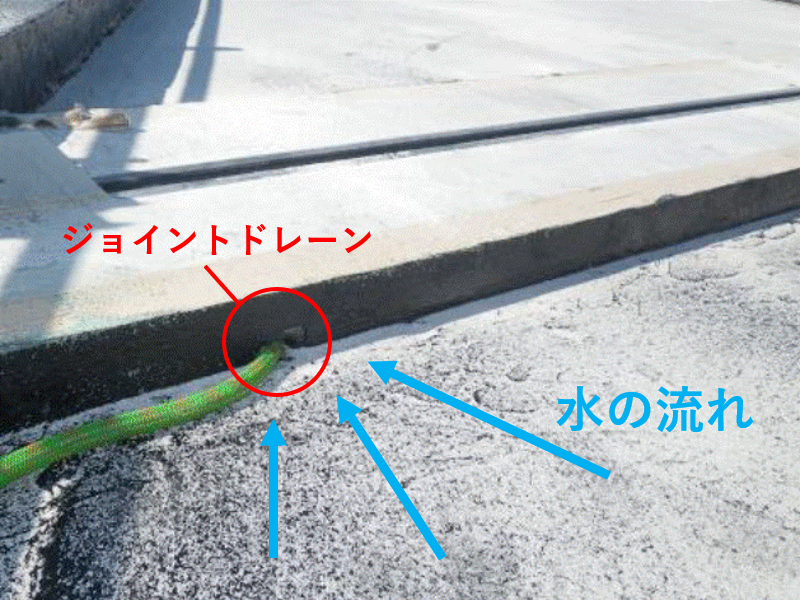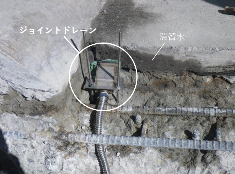 伸縮装置の交換時に取り付けが可能で、伸縮装置ぎわに本製品を設置することで、床版上の排水能力を向上させた。